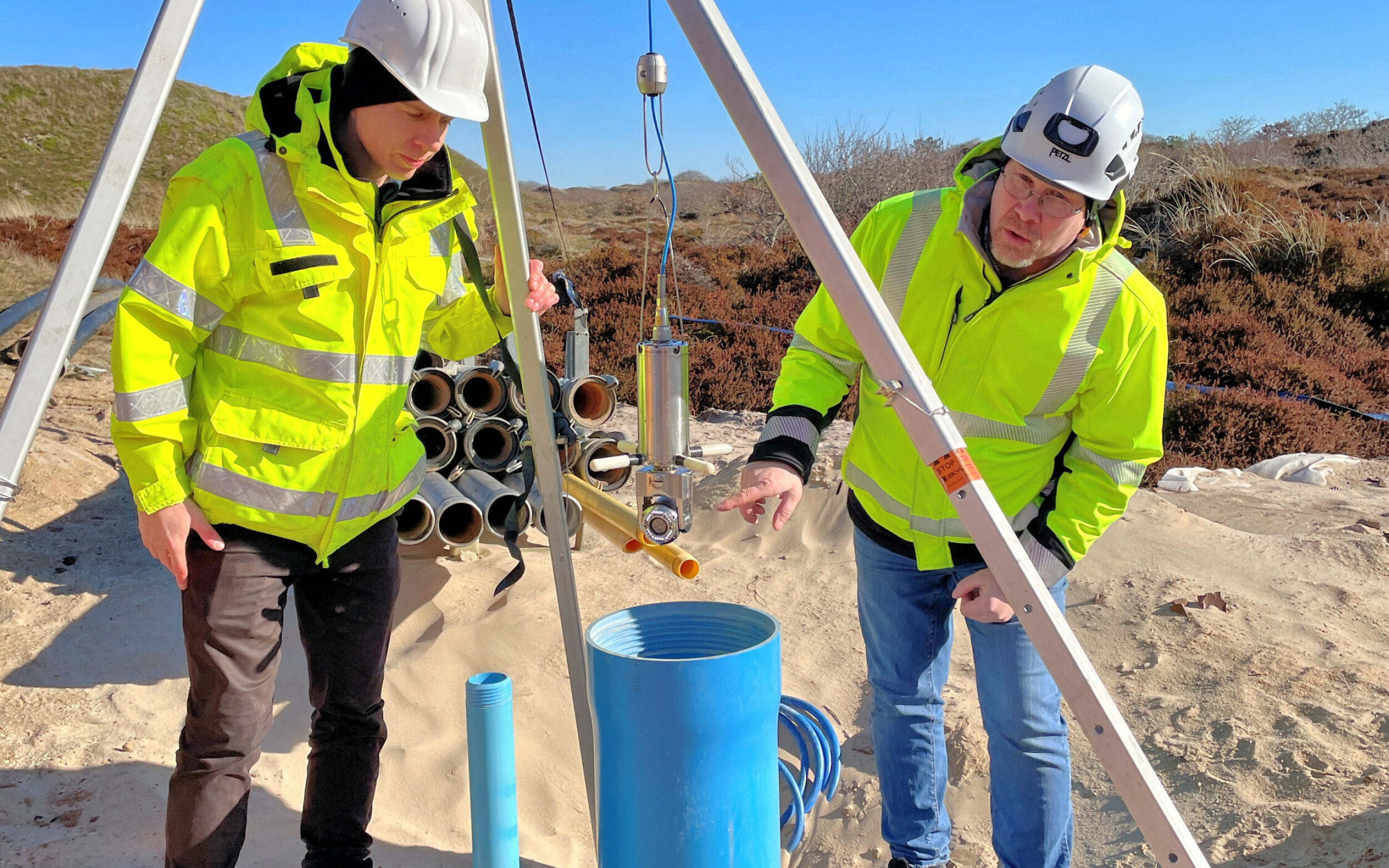 Er und Jürgen Sander stehen in regelmäßigem Austausch. Schon dreimal hatte der 38-Jährige die Gelegenheit, den OOWV-Fachmann zu begleiten, unter anderem beim aktuellen Brunnenbau auf der Nordseeinsel Spiekeroog. „Superspannend“ nennt der Pädagoge seinen eigenen Lernprozess auf diesem Themenfeld. Ihn fasziniere es, sich mit den Details in den Tiefen des Bodens zu beschäftigen. Und hierfür sei „Jürgen ein Sechser im Lotto“, schwärmt Tim Decker: „Er nimmt sich Zeit, zeigt und erklärt alles. Ich sauge alles auf.“