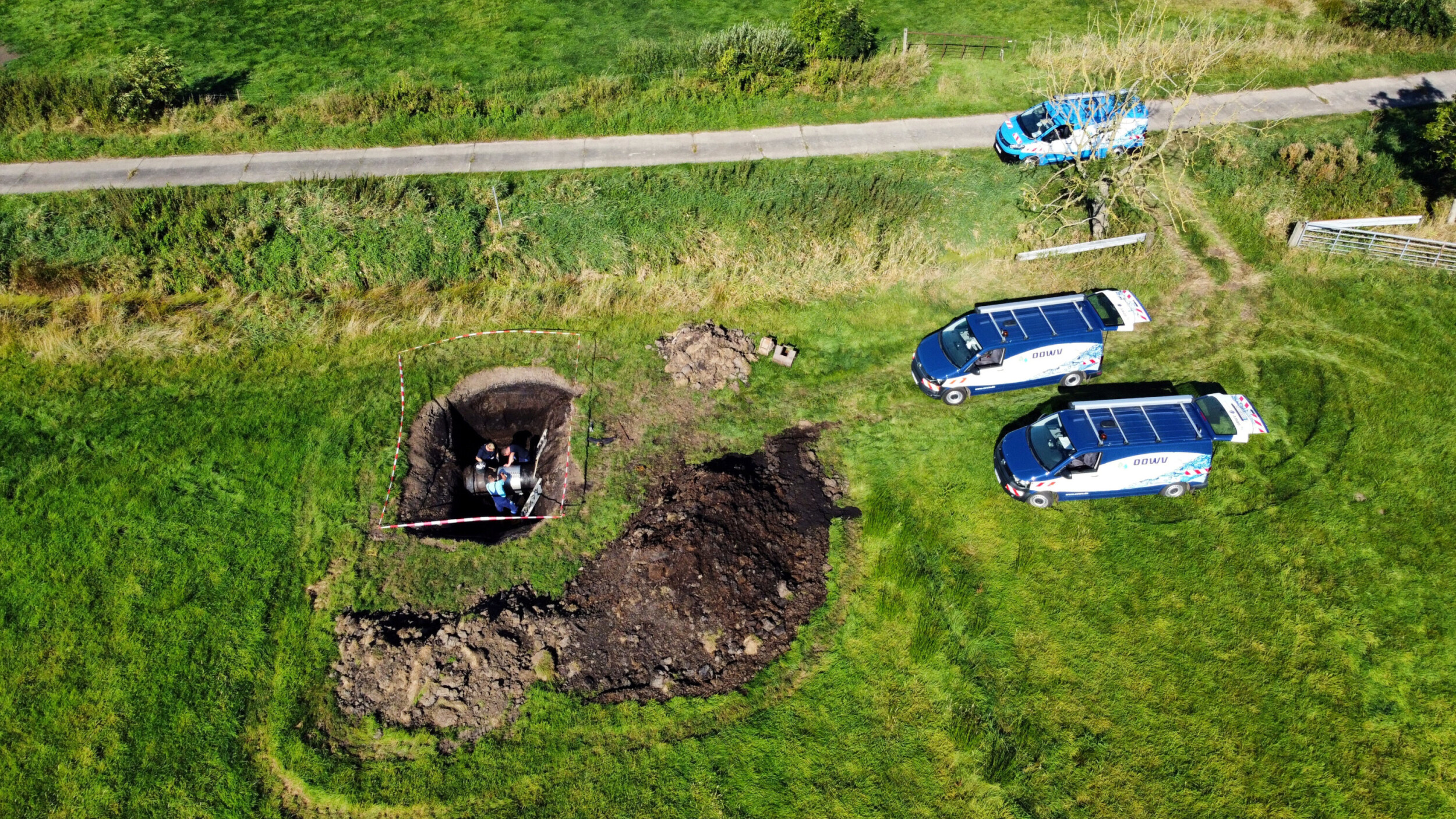 Mit der Koch & Tönjes Straßen- und Tiefbau GmbH & Co KG aus Brake hatten die OOWV-Fachleute einen starken Partner an ihrer Seite. Minutiös war die Maßnahme an der sogenannten Wesermarschleitung, in der Trinkwasser vom OOWV-Wasserwerk Großenkneten bis nach Nordenham gepumpt wird, im Vorfeld geplant worden. Absprache mit den Landwirten, unter deren Flächen die Leitung verläuft, wurden getroffen, Teile bestellt, Dienstpläne umgestellt. Im letzten Schritt wurden elf große Baugruben erstellt, in denen die Fachleute an der im Durchmesser 70 Zentimeter großen Leitung arbeiten konnten, um die besagten Schellen auszutauschen.