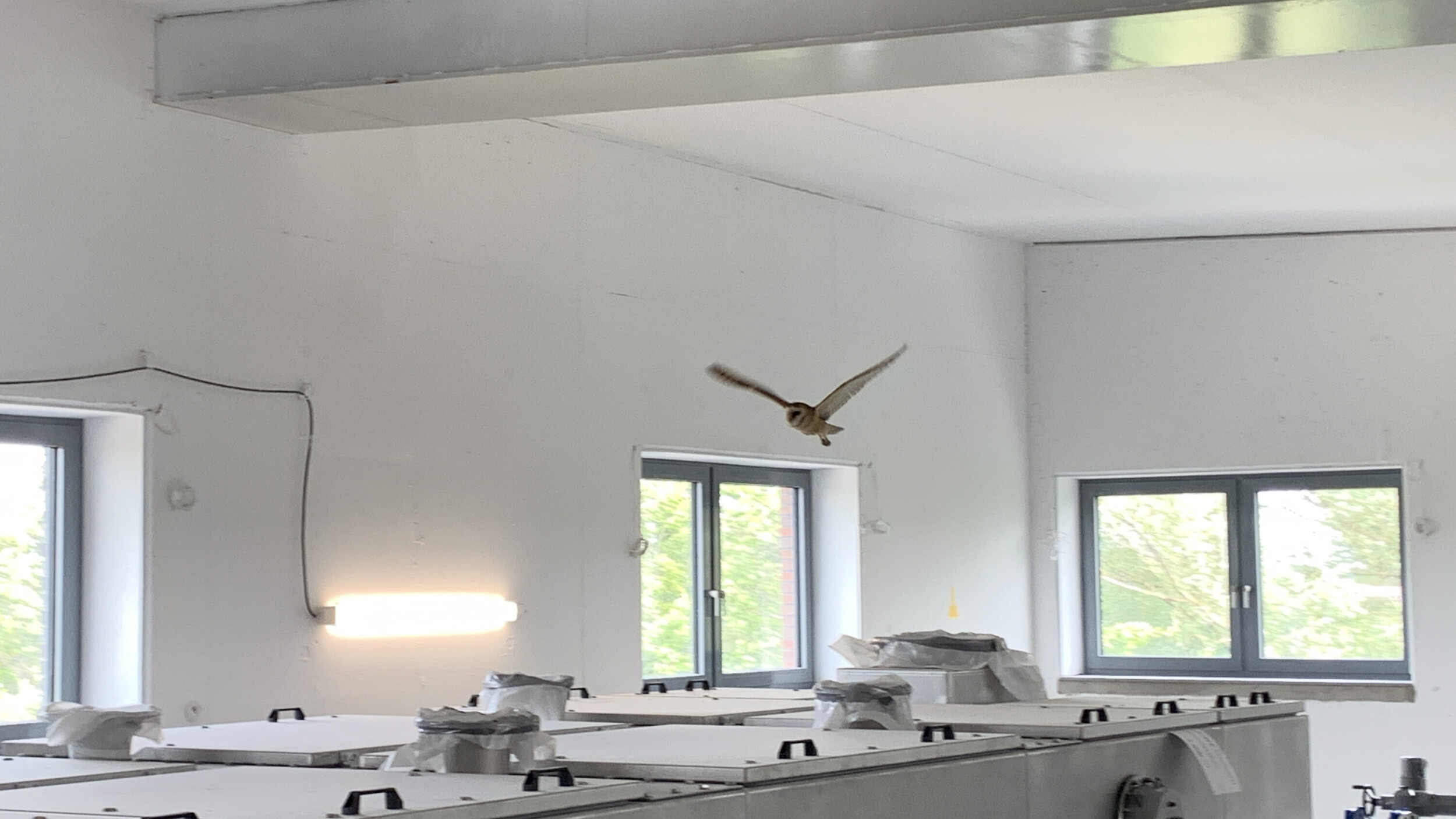 In Marienhafe entsteht derzeit ein neues Wasserwerk des Oldenburgisch-Ostfriesischen Wasserverbands (OOWV). Über den Baufortschritt wollte sich offenbar in dieser Woche eine Schleiereule informieren. Bei der Baubegehung wurde sie von den Kolleginnen und Kollegen vor Ort aufgeschreckt. Schon im Oktober 2023 hatte ein Kauz auf der Baustelle vorbeigeschaut. Die Kolleginnen und Kollegen von Stadt.Land.Grün wollen nun schauen, welche Nisthilfen in Marienhafe aufgestellt werden können. Im gesamten Verbandsgebiet des OOWV gibt es rund 1400 Nisthilfen für Vögel und Fledermäuse.