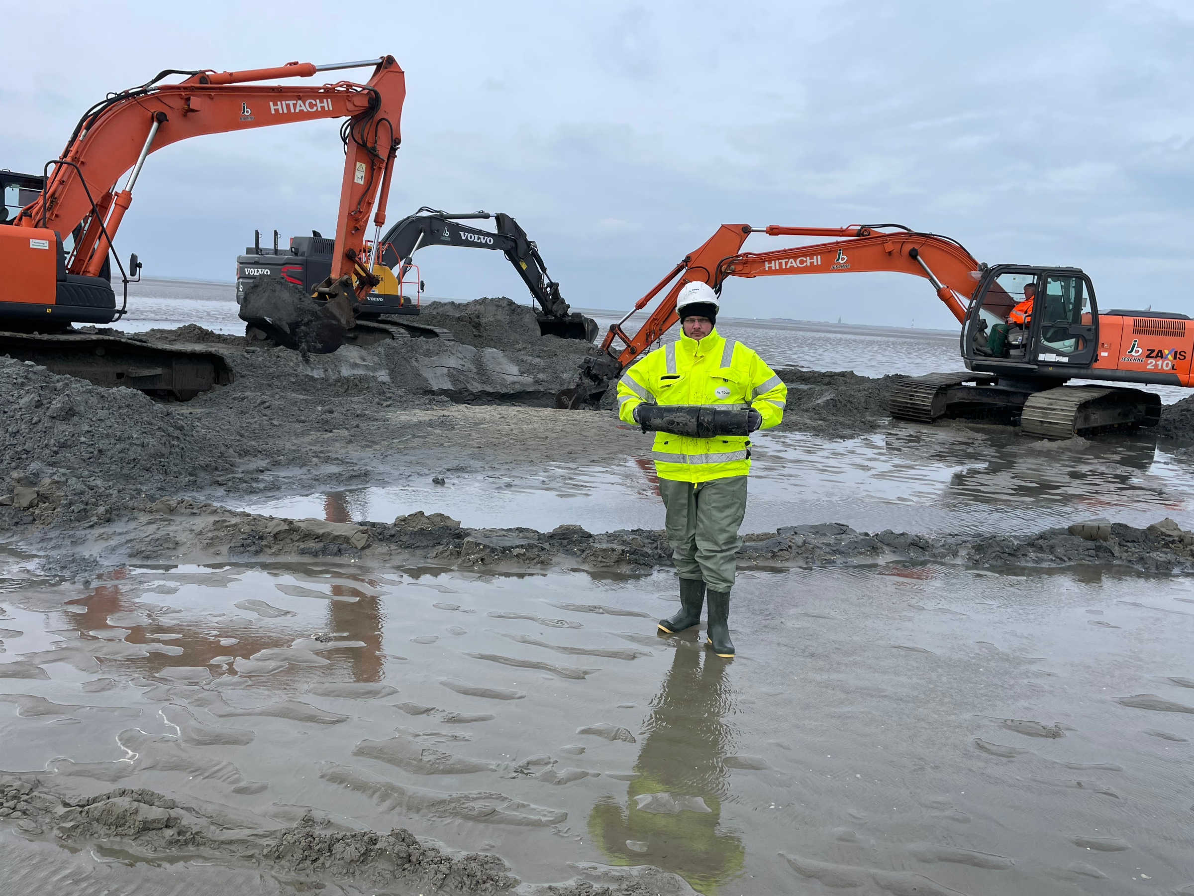 Wettlauf mit der Tide: Einsatz mit drei Baggern sichert Insel-Versorgung