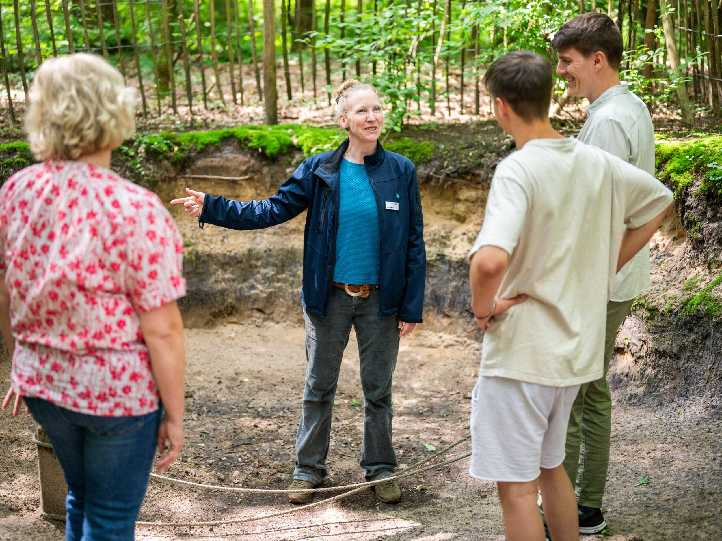 Egal ob bei einer geführten Tour oder auf eigene Faust erkundet: Wer den Lehrpfad auf dem Biohof Bakenhus erforscht, der hört, sieht, erlebt und begreift viel Neues rund um Landwirtschaft und Grundwasserschutz. 24 Stationen mit vielen interaktiven Tafeln und Exponaten bieten Umweltbildung am laufenden Meter und beantworten Fragen wie: Woher kommt das Grundwasser? Welche Stoffe sind gefährlich und wie gelangen sie ins Wasser? Der Abstieg in die Bodengrube vermittelt ein Gefühl dafür, wie dick die Sandschichten sind, die das Regenwasser auf natürliche Weise filtern. Der Lehrpfad ist ganzjährig öffentlich zugänglich, auch dem Damwild und den Ziegen können Familien, Gruppen- oder Einzelbesucher:innen bei einer Radtour jederzeit einen Besuch abstatten. Dank des dichten Baumbestands gibt es sogar an heißen Sommertagen lauschige Picknickplätze.